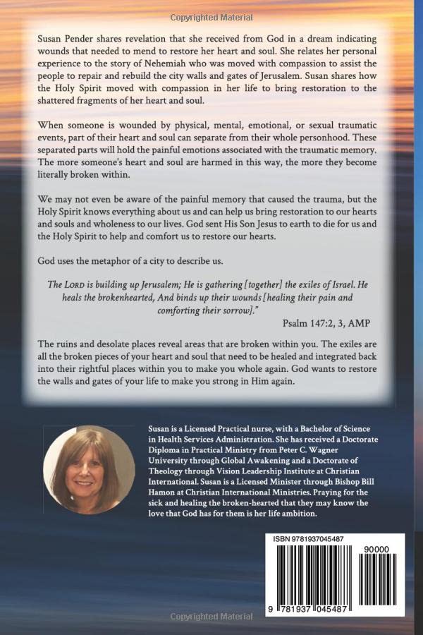 Susan Pender shares revelation that she received from God in a dream indicating wounds that needed to mend to restore her heart and soul. She relates her personal experience to the story of Nehemiah who was moved with compassion to assist the people to repair and rebuild the city walls and gates of Jerusalem. Susan shares how the Holy Spirit moved with compassion in her life to bring restoration to the shattered fragments of her heart and soul.